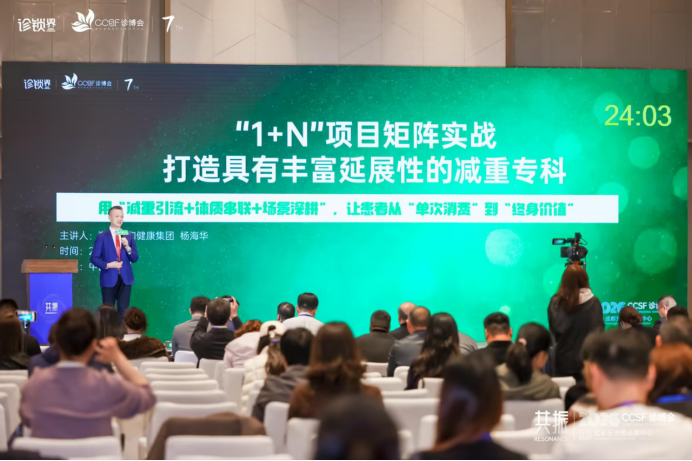 深圳松和健康集团运营总监杨海华,以《1+N项目矩阵实战——打造具有丰富延展性的减重专科》为主题,详解从景减重项目的延展性与落地成果。“1”为核心减重项目,依托从景中西协同体系打造专科口碑;“N”为体质调理、疼痛管理等延伸服务。他结合松和合作实战经验,分享标准化运营与推广技巧,为民营机构搭建可复制的减重专科提供实战参考。