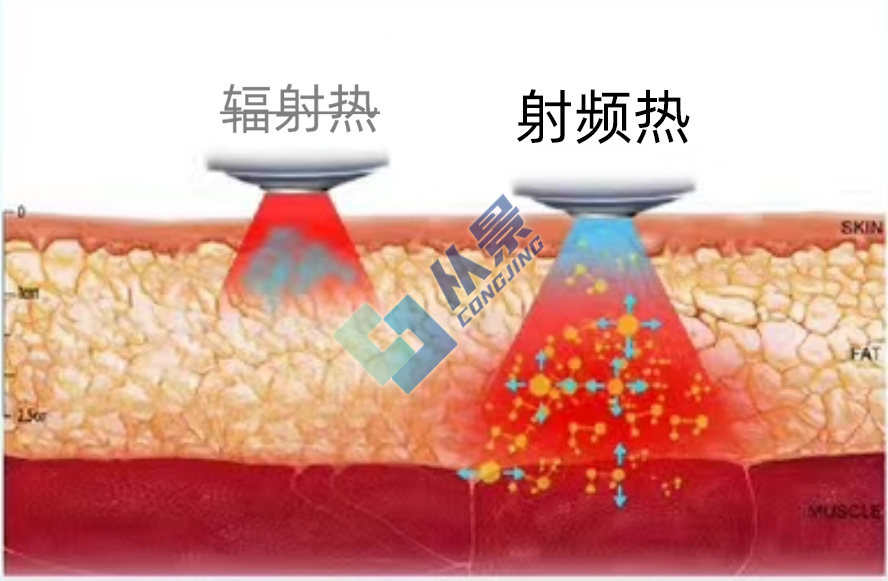 采用微芯片控制技术和射频场效应技术,将射频能量均匀分布于机体,使机体电解质离子和带电微粒做运动,进而产生热能,即射频热效应。